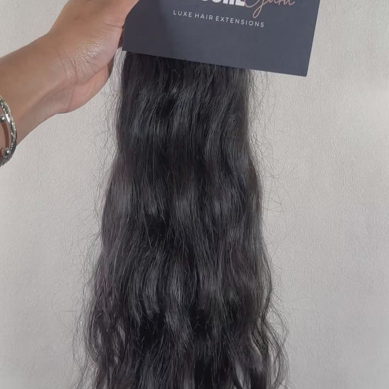 Our Raw Indian Wavy extensions redefine effortless glam. Silky, soft, and versatile. This texture offers the perfect balance between sleek and voluminous. Each strand is 100% raw and unprocessed, with aligned cuticles for minimal tangling and maximum longevity. Whether worn in its natural state or styled, this texture delivers timeless sophistication.